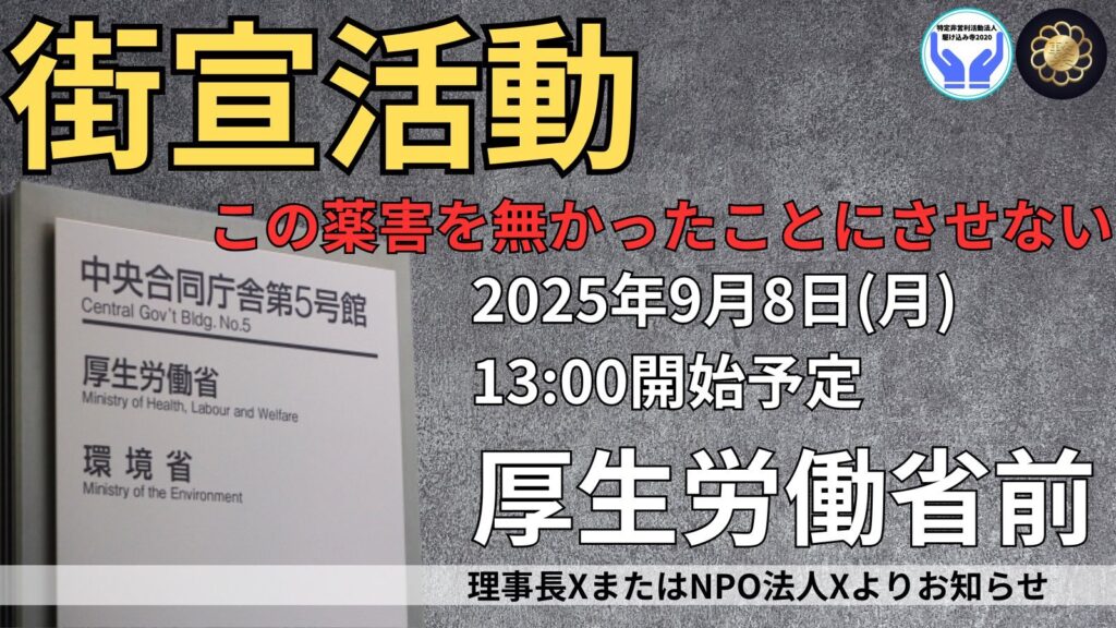 - 2024年9月7日(土)※須田さん情報 コロナワクチン被害 街宣&チラシ配布