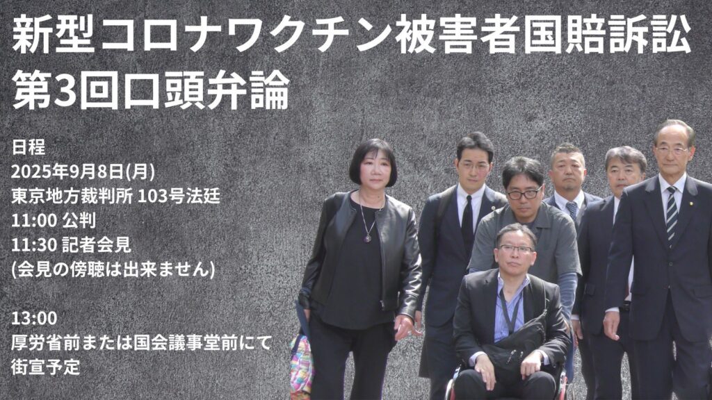 - 2025年9月8日(月)新型コロナワクチン被害者国賠訴訟 第4回口頭弁論